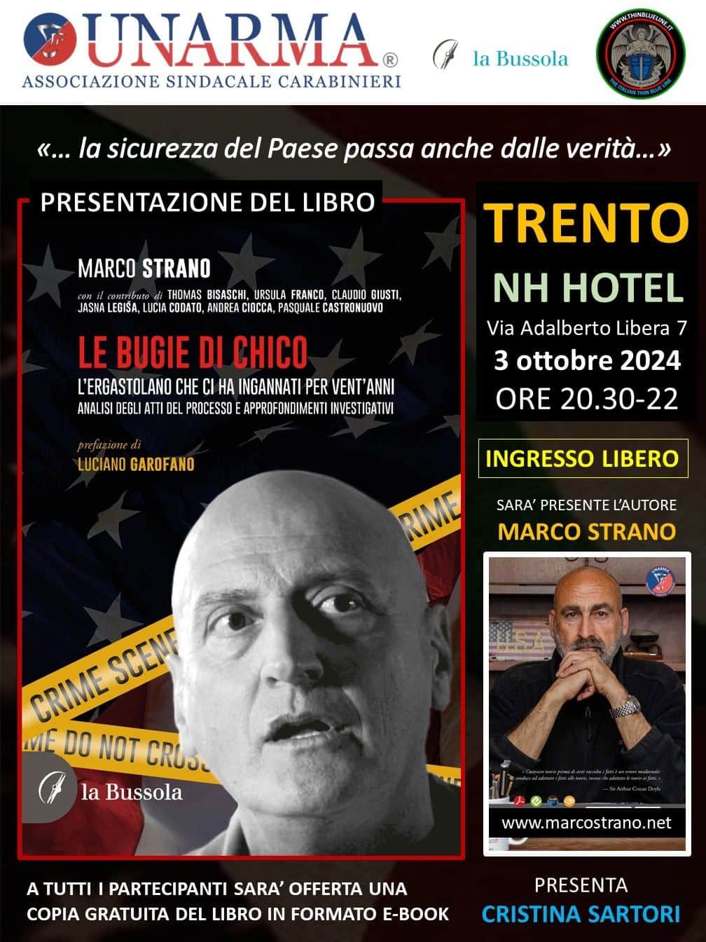 Esprimiamo piena solidarietà al nostro direttore del dipartimento di psicologia militare e di polizia di UNARMA, Marco Strano, per il coraggio dimostrato nell’affrontare un tema così controverso come il caso Chico Forti. Il suo libro, “Le bugie di Chico – Un ergastolano che ci ha ingannati tutti per vent’anni”, che non ha alcuna finalità di lucro essendo gratuito e direttamente scaricabile dal web, e che solleva interrogativi profondi su un caso che ha diviso l’opinione pubblica per due decenni. Il libro verrà discusso pubblicamente durante una delle presentazioni organizzate da UNARMA, in particolare il 3 ottobre a Trento, nell’ambito dell’iniziativa “La sicurezza del Paese passa anche dalla verità”. Le critiche personali e le offese ricevute da Strano da parte di membri della famiglia Forti sono pertanto infondate e non fanno che evidenziare la complessità e la tensione che circondano ancora questo caso. È fondamentale però che professionisti come Strano, che collabora con UNARMA come psicologo da anni, possano esprimere le loro analisi basate su studi e ricerche accurate, contribuendo alla ricerca della verità anche quando essa risulta scomoda o impopolare. Solo attraverso un confronto aperto e onesto possiamo sperare di giungere a una piena comprensione della giustizia. Auspichiamo pertanto che la sera del 3 ottobre prossimo all’hotel NH di Trento ci sia un grande afflusso di persone interessate a ricevere finalmente informazioni corrette su questa vicenda.